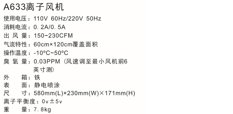 A633離子風機